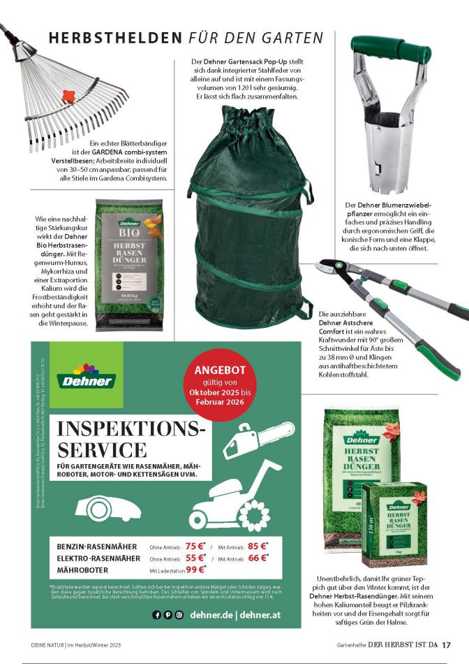 Sie sind an der richtigen Stelle, um den neusten Katalog von Dehner zu lesen ! Sehen Sie unten die letzten Kataloge von Dehner gültig ab 13 Oktober bis 31 Dezember. Sie sehen Rezensionen an, teilen Sie Ihre Meinung und Sie können über Katalogprodukte lesen. Sie können auch alle verfügbaren Kataloge aus derselben Kategorie ansehen, um gleichen Produkte in anderen Läden zu vergleichen. Verpassen Sie nicht Schnäppchen und Bereiten Sie Ihre Online-Shopping und Sparen Sie das ganze Jahr. Auf dieser Seite, Dehner Angeboten, Prospekte, Promotion und Sonderangebote.