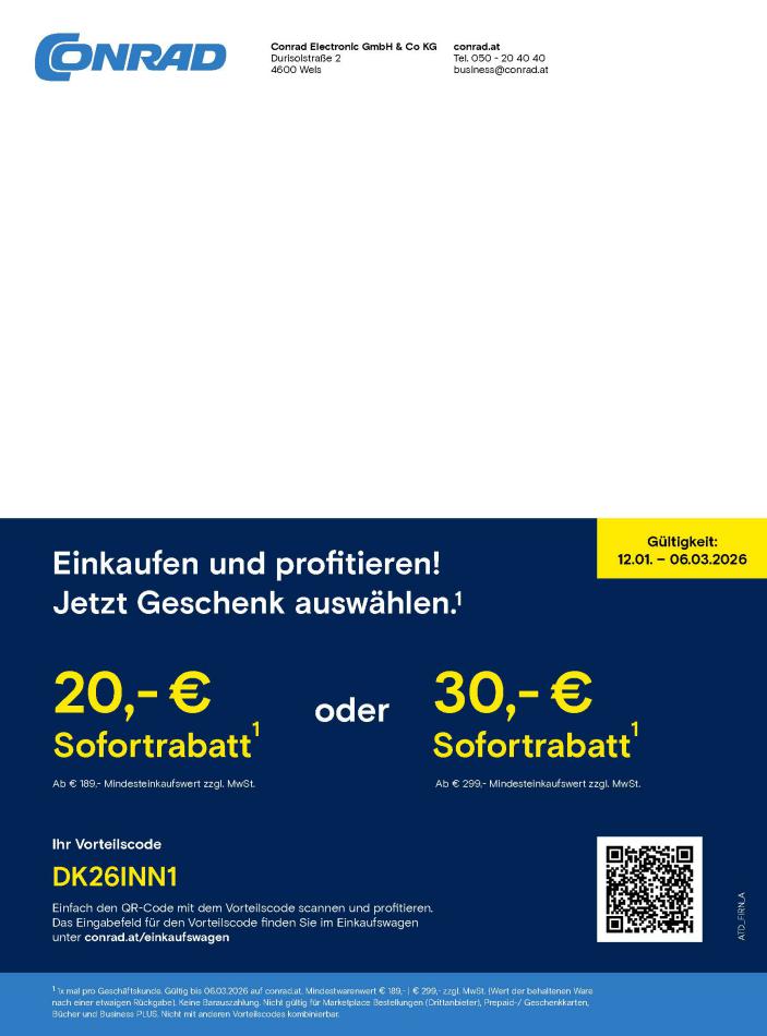 Sie sind an der richtigen Stelle, um den neusten Katalog von Conrad zu lesen ! Sehen Sie unten die letzten Kataloge von Conrad gültig ab 01 März bis 06 März. Sie sehen Rezensionen an, teilen Sie Ihre Meinung und Sie können über Katalogprodukte lesen. Sie können auch alle verfügbaren Kataloge aus derselben Kategorie ansehen, um gleichen Produkte in anderen Läden zu vergleichen. Verpassen Sie nicht Schnäppchen und Bereiten Sie Ihre Online-Shopping und Sparen Sie das ganze Jahr. Auf dieser Seite, Conrad Angeboten, Prospekte, Promotion und Sonderangebote.