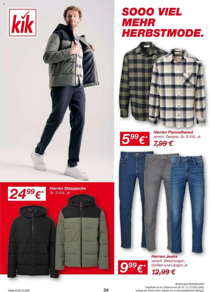 Sie sind an der richtigen Stelle, um den neusten Katalog von KiK zu lesen ! Sehen Sie unten die letzten Kataloge von KiK gültig ab 06 November bis 10 November. Sie sehen Rezensionen an, teilen Sie Ihre Meinung und Sie können über Katalogprodukte lesen. Sie können auch alle verfügbaren Kataloge aus derselben Kategorie ansehen, um gleichen Produkte in anderen Läden zu vergleichen. Verpassen Sie nicht Schnäppchen und Bereiten Sie Ihre Online-Shopping und Sparen Sie das ganze Jahr. Auf dieser Seite, KiK Angeboten, Prospekte, Promotion und Sonderangebote.