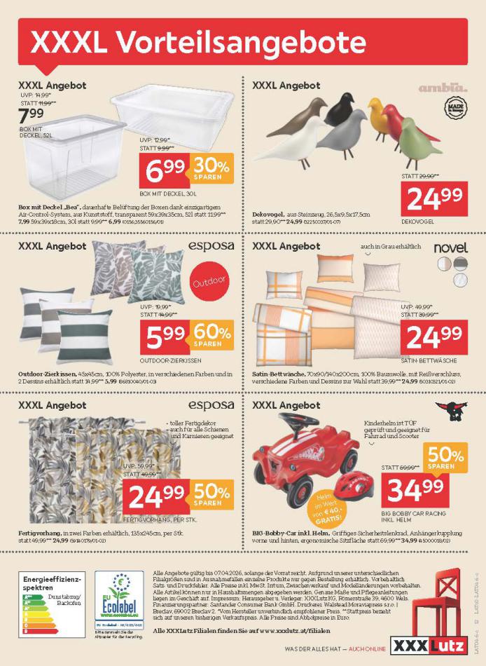 Sie sind an der richtigen Stelle, um den neusten Katalog von XXXLutz zu lesen ! Sehen Sie unten die letzten Kataloge von XXXLutz gültig ab 01 April bis 07 April. Sie sehen Rezensionen an, teilen Sie Ihre Meinung und Sie können über Katalogprodukte lesen. Sie können auch alle verfügbaren Kataloge aus derselben Kategorie ansehen, um gleichen Produkte in anderen Läden zu vergleichen. Verpassen Sie nicht Schnäppchen und Bereiten Sie Ihre Online-Shopping und Sparen Sie das ganze Jahr. Auf dieser Seite, XXXLutz Angeboten, Prospekte, Promotion und Sonderangebote.
