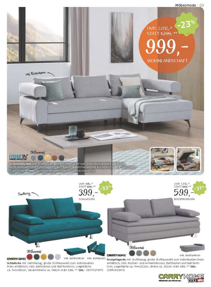 Sie sind an der richtigen Stelle, um den neusten Katalog von XXXLutz zu lesen ! Sehen Sie unten die letzten Kataloge von XXXLutz gültig ab 12 November bis 25 November. Sie sehen Rezensionen an, teilen Sie Ihre Meinung und Sie können über Katalogprodukte lesen. Sie können auch alle verfügbaren Kataloge aus derselben Kategorie ansehen, um gleichen Produkte in anderen Läden zu vergleichen. Verpassen Sie nicht Schnäppchen und Bereiten Sie Ihre Online-Shopping und Sparen Sie das ganze Jahr. Auf dieser Seite, XXXLutz Angeboten, Prospekte, Promotion und Sonderangebote.