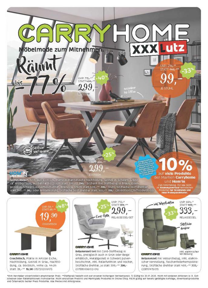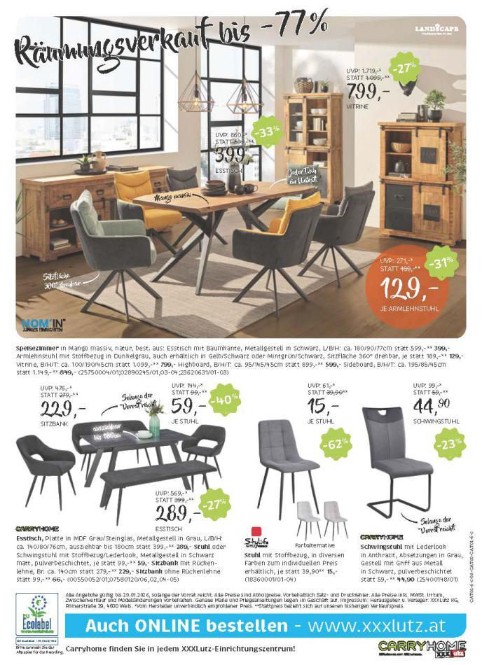 Sie sind an der richtigen Stelle, um den neusten Katalog von XXXLutz zu lesen ! Sehen Sie unten die letzten Kataloge von XXXLutz gültig ab 06 Jänner bis 20 Jänner. Sie sehen Rezensionen an, teilen Sie Ihre Meinung und Sie können über Katalogprodukte lesen. Sie können auch alle verfügbaren Kataloge aus derselben Kategorie ansehen, um gleichen Produkte in anderen Läden zu vergleichen. Verpassen Sie nicht Schnäppchen und Bereiten Sie Ihre Online-Shopping und Sparen Sie das ganze Jahr. Auf dieser Seite, XXXLutz Angeboten, Prospekte, Promotion und Sonderangebote.