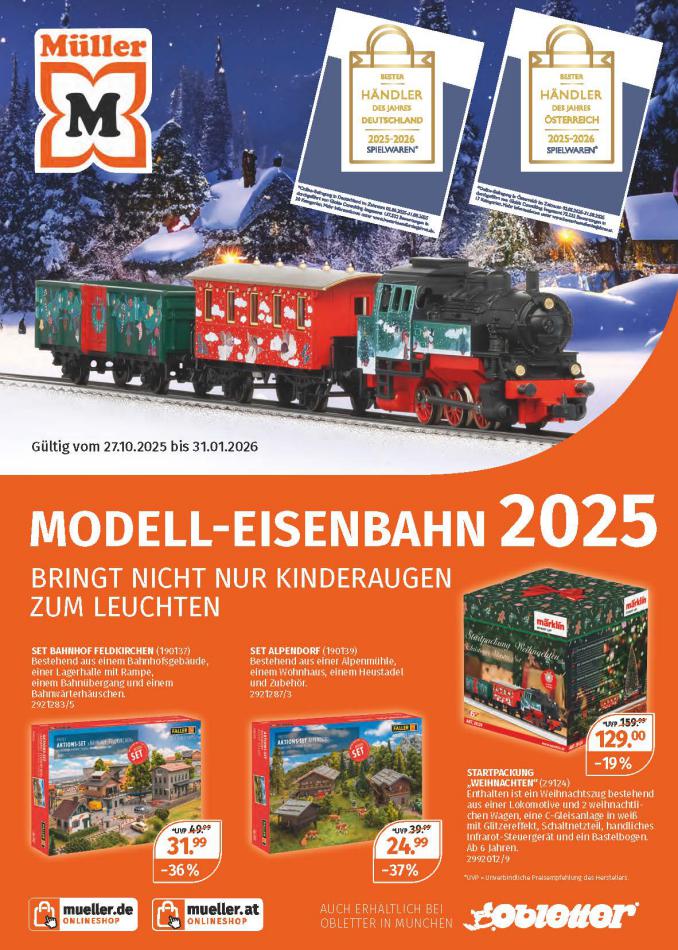 Sie sind an der richtigen Stelle, um den neusten Katalog von Müller zu lesen ! Sehen Sie unten die letzten Kataloge von Müller gültig ab 02 Jänner bis 31 Jänner. Sie sehen Rezensionen an, teilen Sie Ihre Meinung und Sie können über Katalogprodukte lesen. Sie können auch alle verfügbaren Kataloge aus derselben Kategorie ansehen, um gleichen Produkte in anderen Läden zu vergleichen. Verpassen Sie nicht Schnäppchen und Bereiten Sie Ihre Online-Shopping und Sparen Sie das ganze Jahr. Auf dieser Seite, Müller Angeboten, Prospekte, Promotion und Sonderangebote.