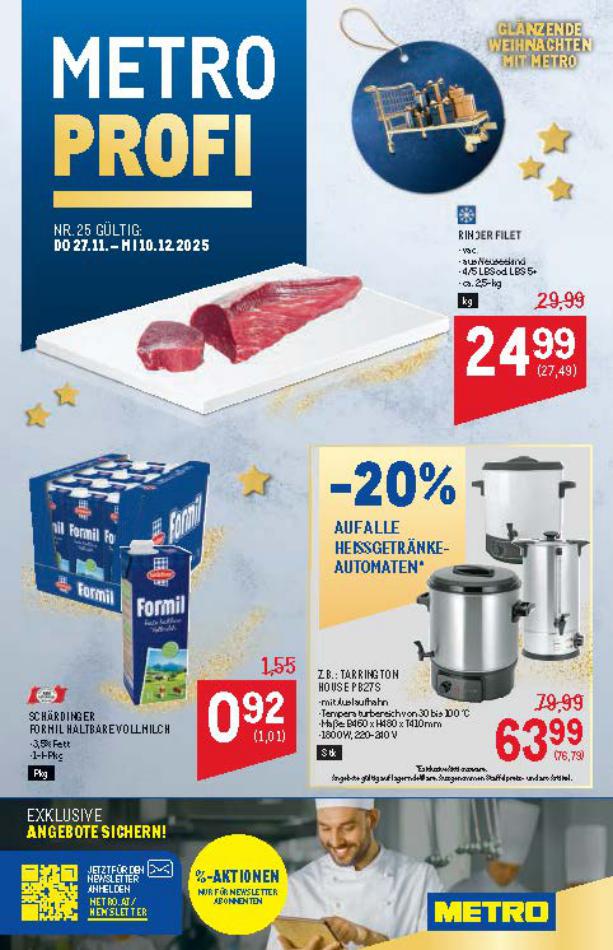 Sie sind an der richtigen Stelle, um den neusten Katalog von Metro zu lesen ! Sehen Sie unten die letzten Kataloge von Metro gültig ab 27 November bis 10 Dezember. Sie sehen Rezensionen an, teilen Sie Ihre Meinung und Sie können über Katalogprodukte lesen. Sie können auch alle verfügbaren Kataloge aus derselben Kategorie ansehen, um gleichen Produkte in anderen Läden zu vergleichen. Verpassen Sie nicht Schnäppchen und Bereiten Sie Ihre Online-Shopping und Sparen Sie das ganze Jahr. Auf dieser Seite, Metro Angeboten, Prospekte, Promotion und Sonderangebote.