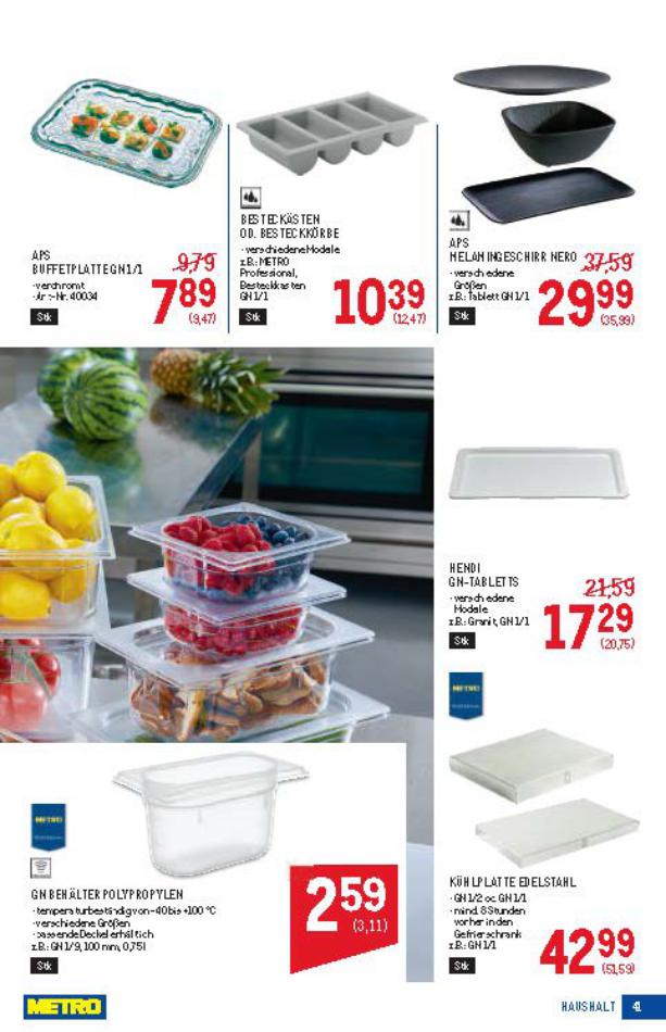 Sie sind an der richtigen Stelle, um den neusten Katalog von Metro zu lesen ! Sehen Sie unten die letzten Kataloge von Metro gültig ab 06 März bis 19 März. Sie sehen Rezensionen an, teilen Sie Ihre Meinung und Sie können über Katalogprodukte lesen. Sie können auch alle verfügbaren Kataloge aus derselben Kategorie ansehen, um gleichen Produkte in anderen Läden zu vergleichen. Verpassen Sie nicht Schnäppchen und Bereiten Sie Ihre Online-Shopping und Sparen Sie das ganze Jahr. Auf dieser Seite, Metro Angeboten, Prospekte, Promotion und Sonderangebote.