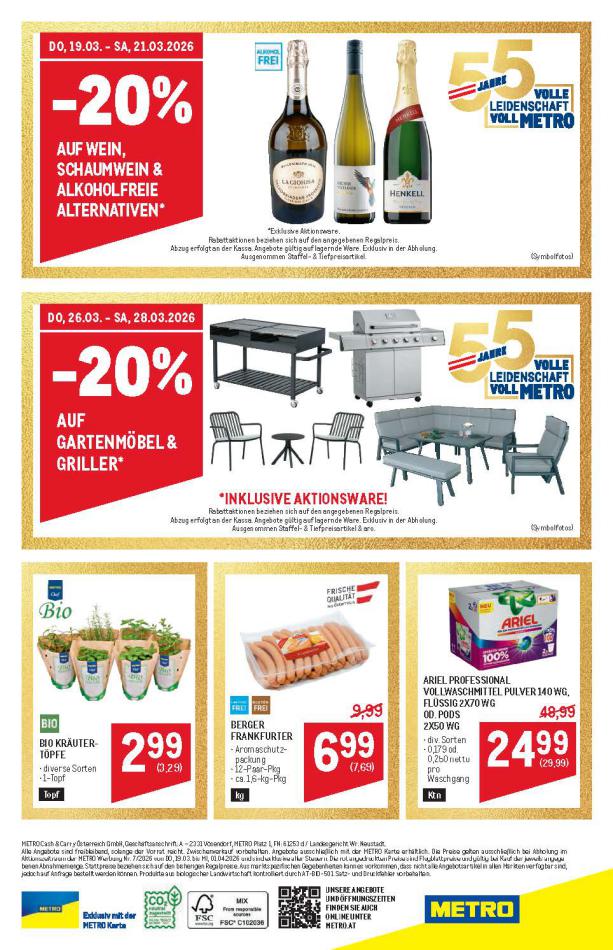 Sie sind an der richtigen Stelle, um den neusten Katalog von Metro zu lesen ! Sehen Sie unten die letzten Kataloge von Metro gültig ab 20 März bis 02 April. Sie sehen Rezensionen an, teilen Sie Ihre Meinung und Sie können über Katalogprodukte lesen. Sie können auch alle verfügbaren Kataloge aus derselben Kategorie ansehen, um gleichen Produkte in anderen Läden zu vergleichen. Verpassen Sie nicht Schnäppchen und Bereiten Sie Ihre Online-Shopping und Sparen Sie das ganze Jahr. Auf dieser Seite, Metro Angeboten, Prospekte, Promotion und Sonderangebote.